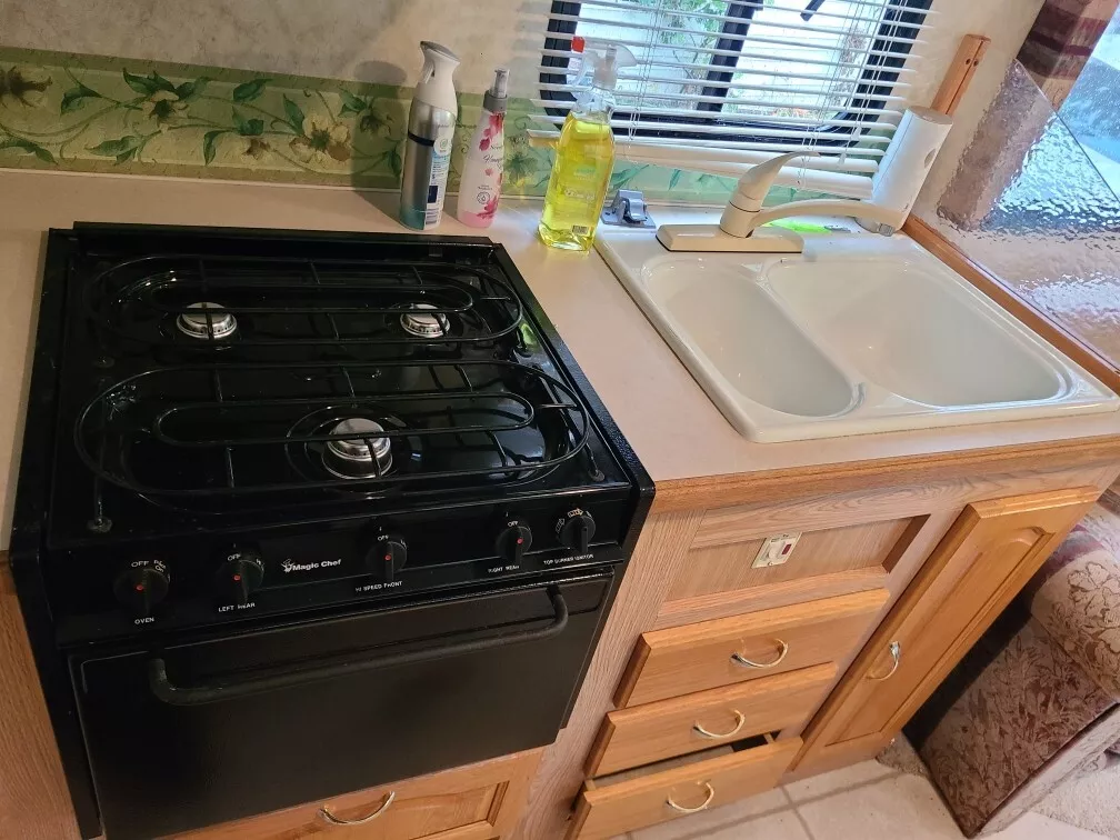 - Kitchen Amenities: Equipped with a kitchen area featuring a stove, microwave, and fridge, perfect for preparing meals on the go.